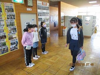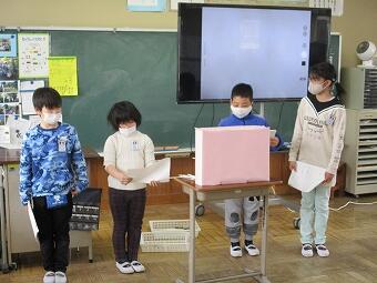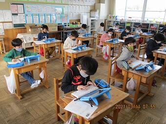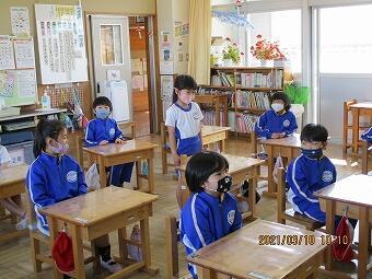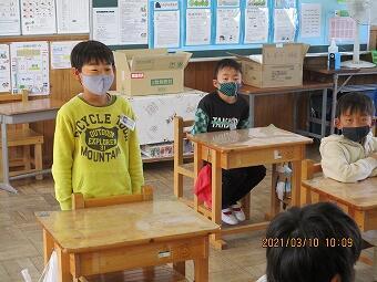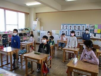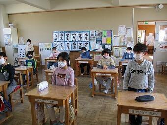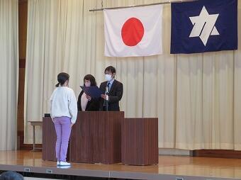 令和2年度修了式を執り行いました。放送で各教室をつなぎ、代表児童が今年度を振り返って頑張ったことを発表しました。その後、みんなで1年間の出来事をまとめたプレゼンを視聴しました。今年度も保護者の皆様、地域の皆様に大変お世話になりました。子供たちはまっすぐ成長しました。ありがとうございました。来年度もどうぞよろしくお願いします。