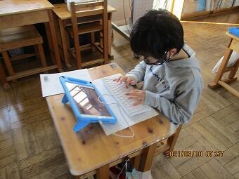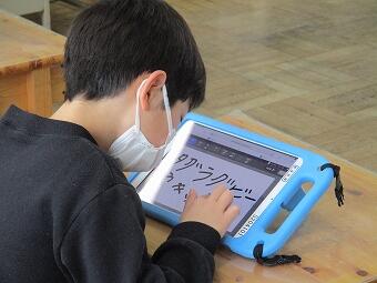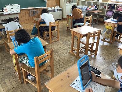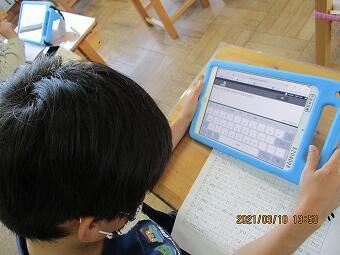2年生が毎朝、朝の学習でタブレットを活用し、ローマ字を練習しています。どの子もずいぶん上達したようです。