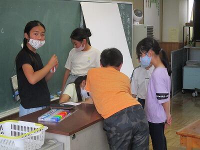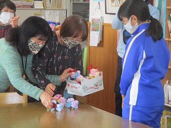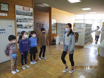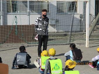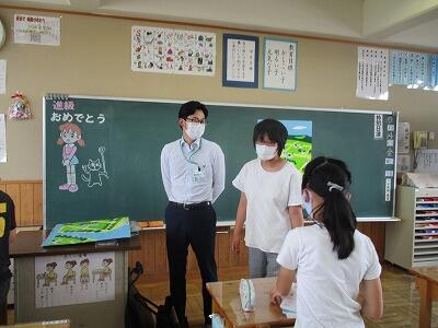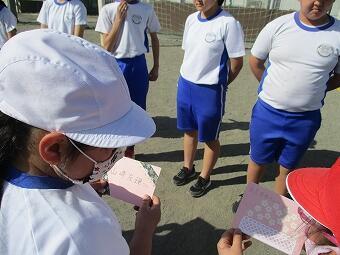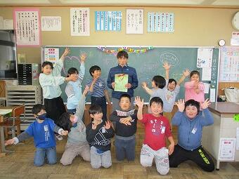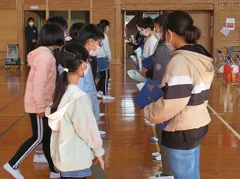 3年生と6年生が卒業お別れ会として、タグラグビーを行いました。お互い思いやりをもちながら、楽しく交流をしました。終わりに6年生が3年生にプレゼントを渡しました。3年生はどの子もとても嬉しそうでした。
