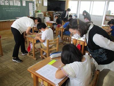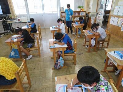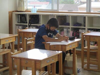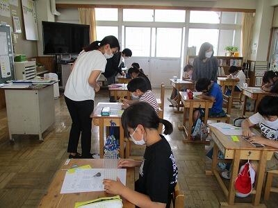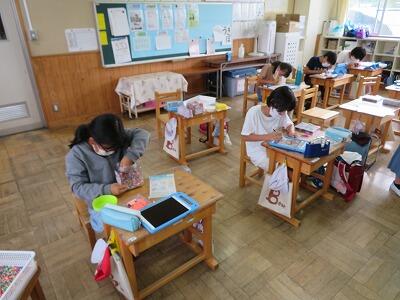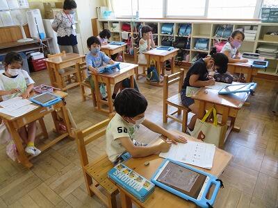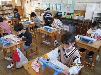 2年生は今、朝の学習でローマ字を学習しています。タイピングを行ったり、紙で覚えたりしています。どの子も意欲的に学習しています。