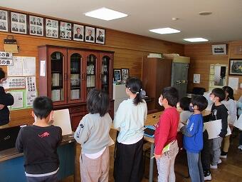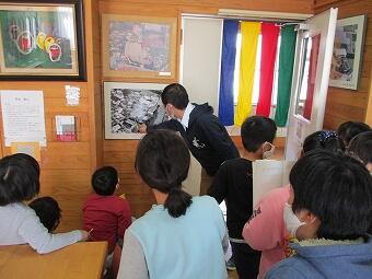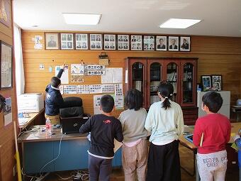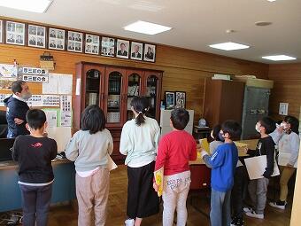 3年生が社会科で学校の歴史について学習しました。校長室に飾ってある歴代の校長先生の写真を見たり、昔からの航空写真を見たりしながら、楡木小学校の変遷について学びました。