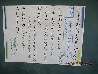 1年生が自分たちで企画して、お楽しみ会を行いました。ゲームや一本線など、みんなで楽しい時間を過ごしました。小学校に入学して1年、みんな大きく成長しました。