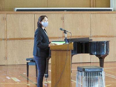 令和3年度新任式・始業式を行いました。校長先生をはじめ、9名の新任の方をみんなでお迎えしました。その後、始業式を行いました。今年度は児童72名、教職員18名で頑張っていきます。どうぞよろしくお願いします。