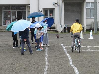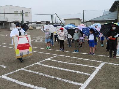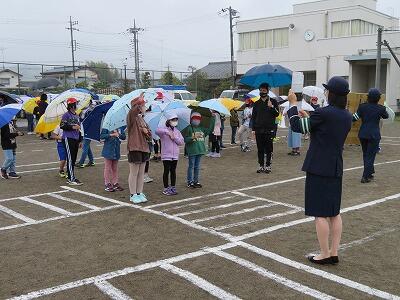 交通安全教室を行いました。あいにくの雨でしたが子どもたちは、頑張っていました。梅雨の時季に備えて傘をさしての登下校の練習ができてよかったと考えてみる発想の転換もあったようです。これからも安全に登下校します。