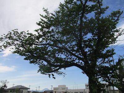 体育館前のこの木が『楡』の木だと教えていただきました。楡木小学校のシンボルツリーですね。