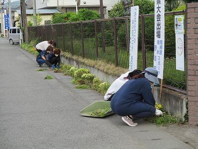 お休みのところ朝早くからお集まりいただき、校庭やフェンス周りの除草作業、運動会のためのサッカーゴール移動、テント設置、プール周りの整備等を行っていただきました。職員や児童だけでは手が回らないので本当にありがたいです。とてもきれいになりました。ありがとうございました。