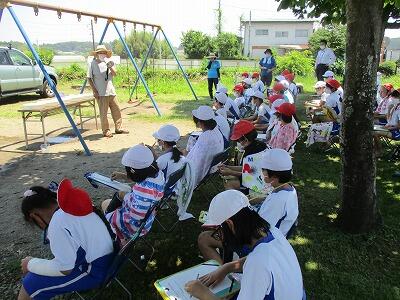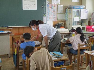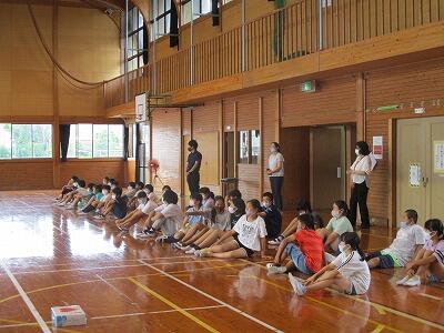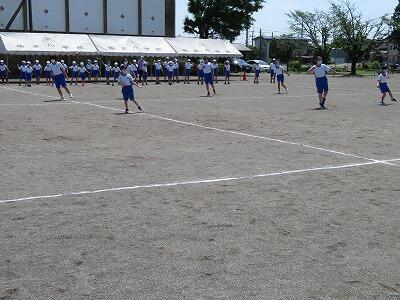 ET(エキスパートティーチャー)は、体力向上を目的とした体育の専門家派遣事業です。本校は和気先生が4、5年生の担当をしてくださいます。今日はソフトボール投げが遠くまで投げられるように肩を中心とした準備運動、ボールの持ち方、投げる角度、体のひねり方、ステップの方法等楽しくご指導いただきました。練習前と後では、かなり効果が出ていたようです。素直で真面目な児童ですね、と褒めていただきました。また、秋に来ていただきます。よろしくおねがいします。