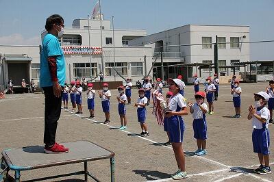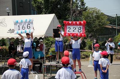 青空のもと、運動会が行われました。天気が良すぎるくらいで、熱中症が心配でしたが、子どもたちが元気に活躍してくれ、無事に終了することができてよかったです。今年の運動会もコロナ禍のため縮小の形を取りましたが、練習の成果を発揮し、子どもたちが精一杯頑張る姿を、また、係活動やパフォーマンスで活躍する6年生の勇姿を保護者や家族の方に見せられてよかったと思います。また保護者の方には前日の準備、後片付けをご協力いただき、ありがとうございました。