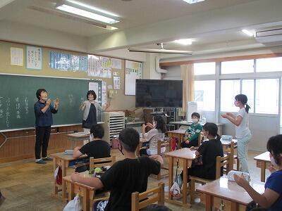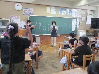 4年生の総合的な学習のテーマは「福祉」です。今日は手話の学習をしました。みんな真剣に取り組んでいました。