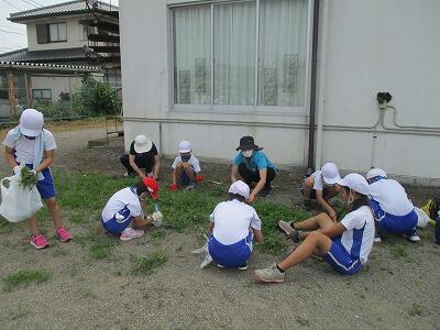 地域の方に学校に来ていただき、一緒に除草活動を行いました。本来であればおしゃべりをしながら草むしりを行う楽しい時間のようですが、このような時期ですので、だまって一生懸命活動しました。校庭が見違えるほどきれいになりました。ありがとうございました。
