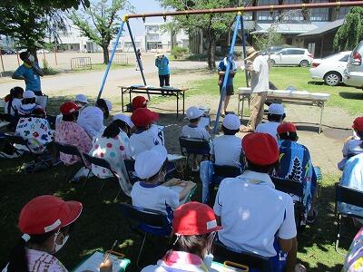 日中、外に出ると暑い日が増えてまいりました。5月の連休明けには運動会の練習が始まります。熱中症防止対策を行いながら練習しましょう!ということになり、ミストシャワーを付けました。休み時間や、体育の時にも活躍してくれると思います。