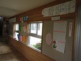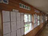 校内を歩くと児童の頑張りの様子がたくさん見られます。3,4年生の階段の踊り場には図工の作品が飾られています。個性豊かで素敵ですね。