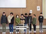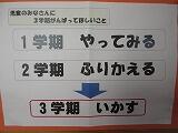 校長からは、「へび年は新しい挑戦や変化に対して前向きな姿勢を示す年ということでみなさんもしっかりと目標をもち、いろいろなことに挑戦してください。」という話と「3学期は今の学年の「仕上げ」と次の学年の「準備」をしましょう」という話をしました。1学期の目標「やってみよう」2学期の目標「振り返りをしっかりしよう」3学期は、振り返りをぜひ自分の生活に活かす努力をしてほしいと思います。