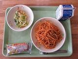 本日の給食の献立は、スパゲティミートソース、牛乳、フレンチサラダ、米粉ドック(チョコ)です。今月の27日からは学校給食週間特別献立があります。楽しみですね。