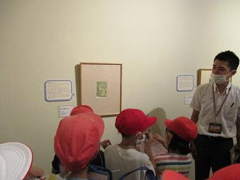 3,4年生が図工の時間に「川上澄生アート展」の作品を見学しました。本校教諭が作品について説明すると、「あー、なるほど」、「すごい」といった声が聞こえてきました。どの子も、版画の無限の可能性、芸術作品の奥深さを感じることができた授業でした。