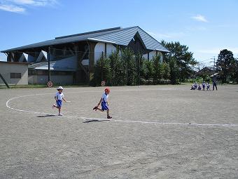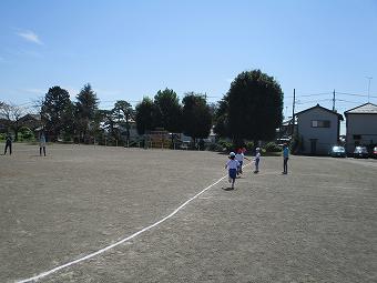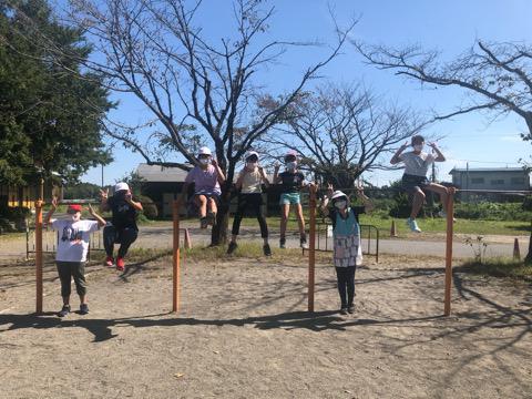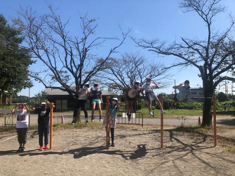 秋晴れのもと、みんな楽しそうに遊んでいます。