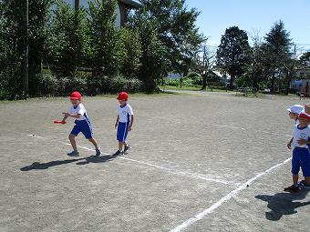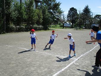 3年生が体育でリレーをやりました。どの子も一生懸命走り抜いていました。