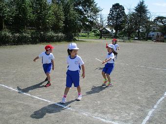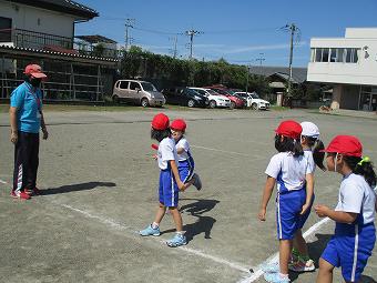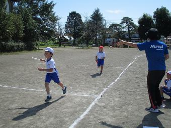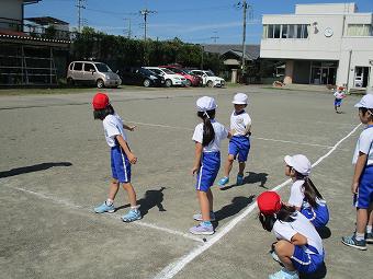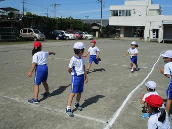 1年生が体育でリレーの学習をしました。今日の秋晴れのように、どの子も爽やかに駆け抜けていました。