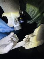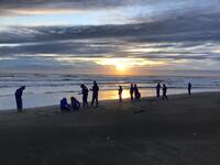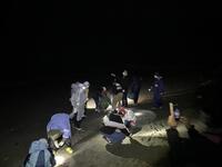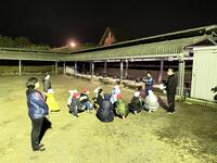 雨が降らなかったので、ナイトハイクに行くことができました。砂浜では、カニや貝殻を見つけ、あちこちで歓声が上がっていました。