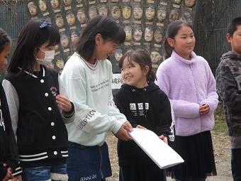 本校では「チャレンジ読書」という活動を行っています。各学年ごとにある「チャレンジ読書20選」の本を1年間で読破しようという活動です。20選をすべて読み終えた児童には、読破賞の表彰と図書委員会が作成したしおりがプレゼントされます。今日も読破した児童に図書委員がしおりをプレゼントしていました。