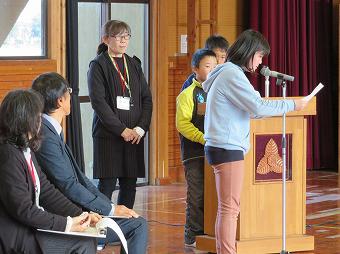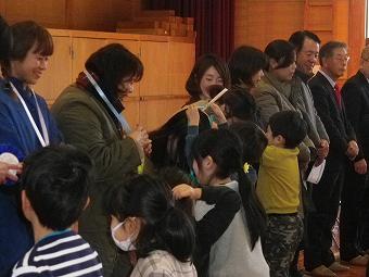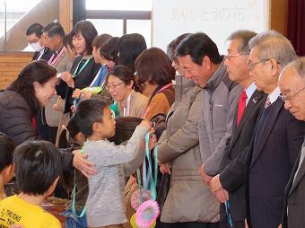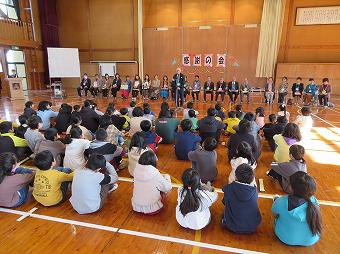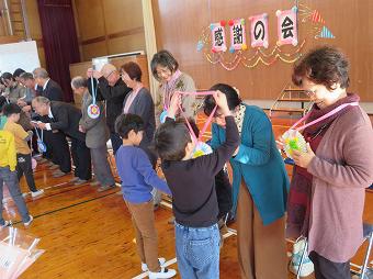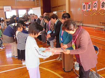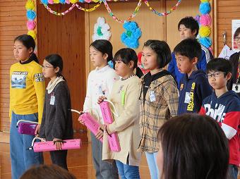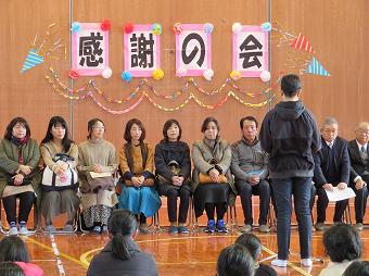 日頃お世話になっているボランティアの方、地域の方をお招きして感謝の会を開きました。各学年が、代表児童のお礼の言葉のあと、歌や合奏を披露したり、心を込めて作ったプレゼントを渡したりしました。最後にボランティア代表の方から、「今日は、たくさんのハッピー、スマイルをリレーしてもらえました」とのお言葉をいただきました。ボランティアの皆様、地域の皆様、一年間、大変お世話になりました。これからもどうぞよろしくお願いいたします。