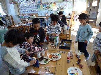 1年生が生活科で秋のおもちゃづくりを行いました。秋の自然物を使って、想像の翼を広げて、楽しいおもちゃを作りました。どの子も、意欲的に学習していました。