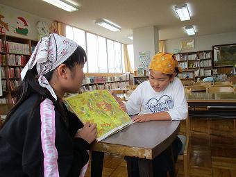 今週は図書委員が昼休みに読み聞かせをしています。読み聞かせに参加してくれた子にお手製のしおりもプレゼントしています。高学年の児童は、自分が人のために役立っていることを、低学年の児童は、学校は楽しい場であること、上級生は頼りになることなどを、このような活動から学んでいます。