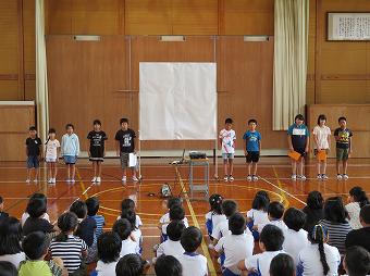 生活委員会集会後、表彰集会を行いました。夏休みに行われた各種スポーツ大会の表彰、口と歯の健康標語ポスター等に関する表彰、国体栃木大会に向けてのジュニア強化選手認定などを行いました。楡小っ子はさまざまな分野で活躍しています。