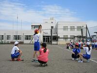 1,2年生は体育館で体育で、私が行った時にはちょうどドッジボールを行っていました。途中からボールが2個になりましたが頑張ってボールを投げたりよけたりする様子が見られました。