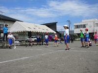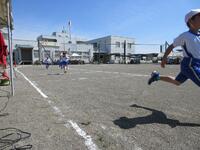 (6)来年楡木小に入学予定の皆さんによるかけっこです。最後まで頑張って走れました。