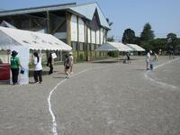 今日は運動会の予行練習日です。まずは、1,2年生の個人走です。1、2年生の競技に合わせて準備係、審判係、出発係、放送係の児童も仕事の確認をしています。