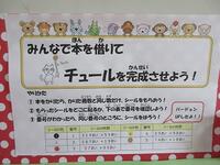 本日は天気が良くないために図書室の利用者が多くみられました。「本を借りてチュールを完成させよう」では、まだ2か月ですが多くのシールが貼られています。たくさんの児童が本を借りていることがわかります。