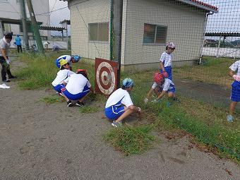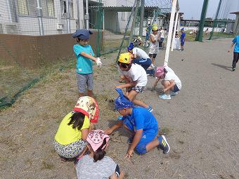 清掃の時間に全校除草を行いました。学年ごとにエリアを決めて取り組みました。短い時間でしたが、どの子も前向きに一生懸命取り組んでいました。ちなみに最初の写真は昼休み行ったマイチャレンジ中学生対本校職員の野球対決の様子です。