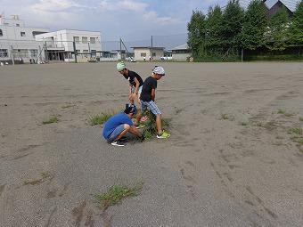 始業式を間近に控え、楡小草刈り隊の方々が、伸び放題だった校庭の草刈りを行って下さいました。早朝より有志が集まって下さり、通常1時間の作業時間のところを、ここもやろう、もう少し、と言ってくださいながら、1時間半も作業をして下さいました。お陰で校庭も見違えるようにきれいになり、月曜日からの2学期が気持ちよくスタートできます。参加いただきました草刈り隊の皆様、大変ありがとうございました。