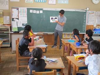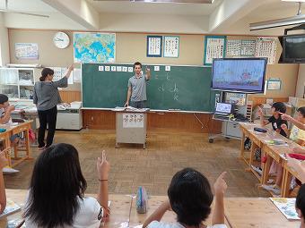 2年生が3時間目に外国語活動を行いました。ALTの先生、担任の先生と一緒に、ジョリーフォニックスをしたり、あいさつを英語で行ったり、I LIKE~の文をペアになって言い合ったりしました。どの子も英語を楽しみながら学習していました。