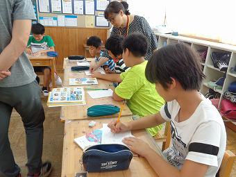 6年生で外国語科の学習をしました。マイチャレンジ生もアシスタントとなって、みんなで英語を学びました。最初にジョリーフォニックスの復習をした後、今日の新しい発音、c、k、ck を学習しました。身振りも交えて発音を覚えながら、アルファベットの書き方も学習しました。どの子も楽しく一生懸命取り組んでいました。