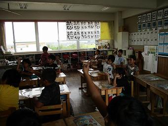 1年生が国語の時間に、「夏休みのことを話そう」をめあてにした学習を行いました。話すとき、聞くときの約束を確認した後、どの子も一生懸命に発表し、聴いている子も、真剣に聴いたり、質問したりしていました。