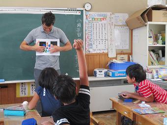 5年生がALTとともに外国語科の学習を行いました。最初にジョリーフォニックスを用いて発音を学習しました。今日の新しい発音は「h」です。続いて、He,Sheを使って、can,can'tの学習をしました。〇☓ゲームや指さしゲームなどを交えながら、楽しく外国語を学びました。
