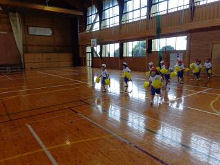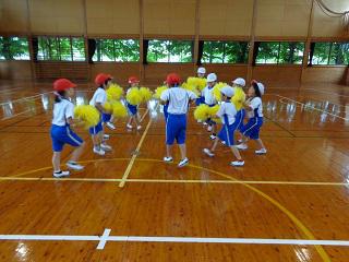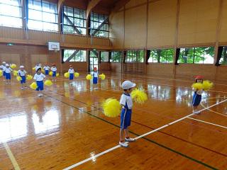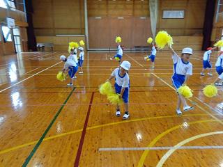 3時間目、1年生は体育でした。今日の体育は運動会で披露した表現『あいうえ・おんがく』のテストです。「リズムに乗って。」「大きく動いて。」「笑顔で。」の3つのめあてを教わってから、みんなで踊りました。どの子も、めあて通り、リズムに教ながら、楽しそうに踊っていました。