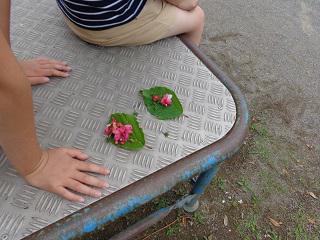 1時間目、6年は理科でした。「根から取り入れた水はどこを通って植物の体に行きわたるのだろうか」を学習課題として、みんなで話し合ったり、色のついた水に浸しておいた植物を分解して観察したりしました。特に白いアジサイの花びらの隅々まで細く赤い筋がついていることに、どの子も驚いていました。「きれい。」「水は根や茎を通って、こんなふうに花びらの先まできてるんだ。」といったつぶやきが聞こえてきました。