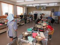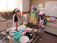 6年生は調理実習です。「炒める」学習で卵や野菜を炒めています。色どりもきれいにできあがりました。いいにおいがしてきます。