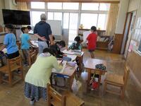 3,4年生は運動会の準備をしています。グループで話し合って何か書いていますね。何を書いているかは、本番までのお楽しみです。
