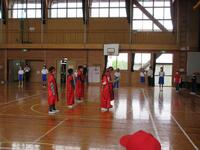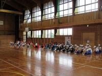 運動会に向けて応援の全校練習が行われました。雨天のため、体育館での練習になりました。紅組も白組も一生懸命に応援しています。