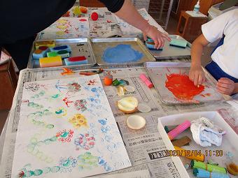 2年生が図工で版画を行いました。自分で型紙をつくり、色を付け、版画にしていました。どの子も想像力を働かせて、楽しそうに活動していました。