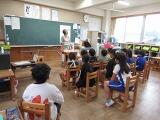 夏休みが明けて、初めてのKLVさんによる朝の本の読み聞かせがありました。今日のお話は「おおきな かぶ」です。1年生は教科書にのっているお話ですね。掛け声をかけるところでは、みんなで「うんとこしょ どっこいしょ」と声を合わせました。