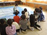1,2年生を対象にKLVさんによる朝の読み聞かせがありました。今日のお話はグリム童話「かえるの王様」と「ビンの中のおばけ」です。