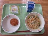 本日の給食の献立は、冷やし中華、牛乳、メンチカツ、レモンタルトです。