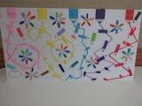 3年生は国語の時間で、詩の学習をしています。「夕日がせなかをおしてくる」の詩を読んで感想を伝えあっていました。教室内には図工の作品が飾られており、とてもきれいなので写真に撮らせてもらいました。
