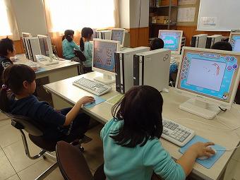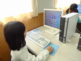 1年生がパソコン室で、初めてのパソコンの学習を行いました。初めてキーボードに触れる子も多かったのですが、皆飲み込みが早く、さっそく馴染んでいろいろな操作を行っていました。どの子も、意欲的にパソコンに取り組んでいました。