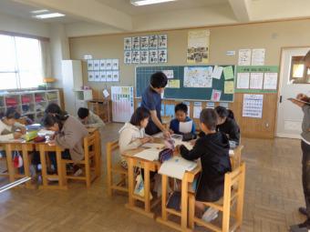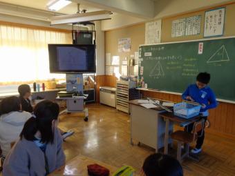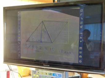 5年生が算数で「3角形の面積の求め方を考えよう」をめあてに学習しました。最初に、どうしたら三角形の面積が求められるかを自分で考え、その後、グループで話し合いました。タブレットを活用して、何人かの子が自分の考えを発表し、それぞれの考えを深めました。最後は、やはりタブレットを活用したふりかえりを行いました。どの子も一生懸命考え、話し合い、振り返りをしていました。